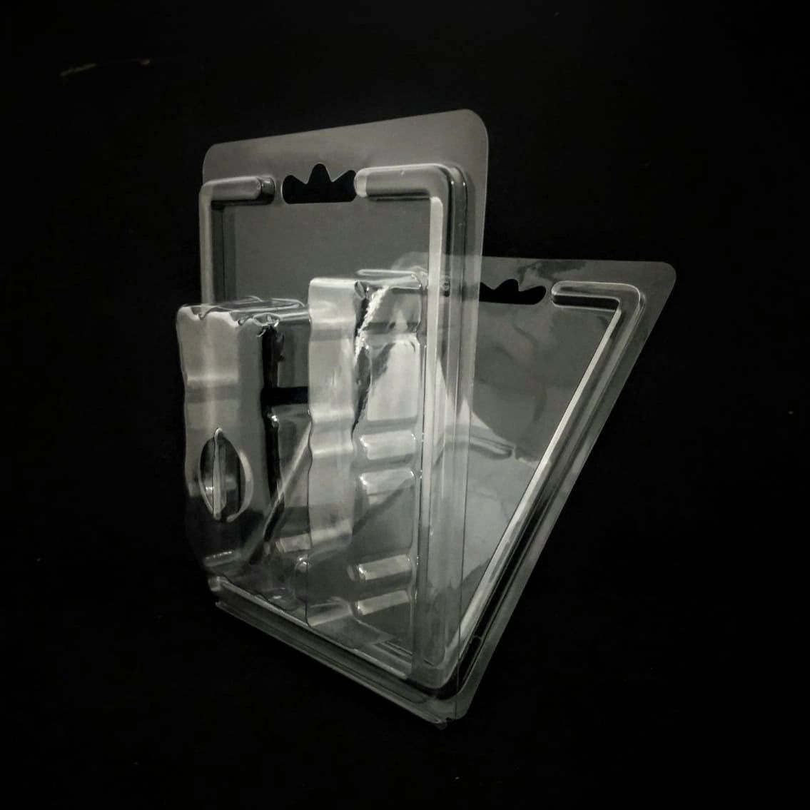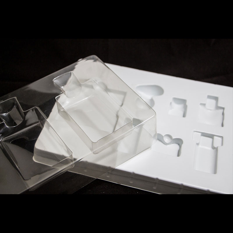 Es una pieza plástica que consta de dos partes base y tapa, unidas por una bisagra, que se cierra con botones o broches o a través de sellado, o por medio de calor. Permite al consumidor ver el producto sin necesidad de tocarlo. Garantiza la seguridad del producto. Reduce las devoluciones por deterioro del empaque.